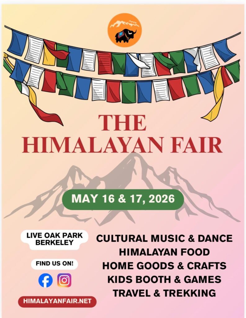 The Himalayan Fair Committee is happy to announce the 43rd annual Himalayan Fair will take place on May 16th & 17th, 2026 at the beautiful, Live Oak Park in Berkeley, CA.